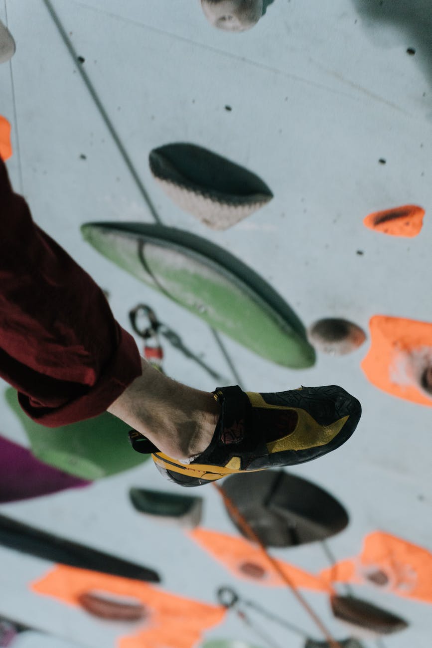 Pirmiausia – padanga. Ji turi būti guminė ir kiek įmanoma plokščia. Bėgimo bateliai su stora, profiliu padanga čia tinka prasčiau nei atrodo, nes jie sukurti judėjimui į priekį, o ne stabilumui ant šono. Idealiausia – laipiojimo uolomis bateliai arba geri trailinio bėgimo batai su plokštesniu padu.